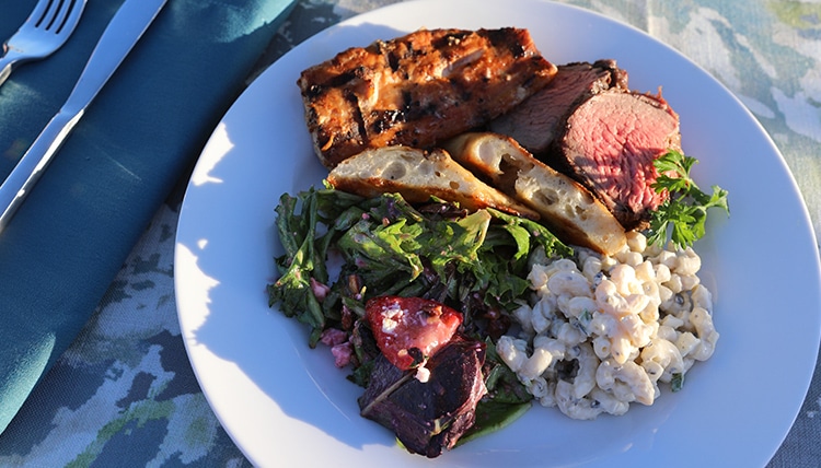 Don’t get too stuffed at the finish line beach lunch. Remember to save room for the main course gourmet BBQ dinner service which opens at 4pm on Hearst Ranch.