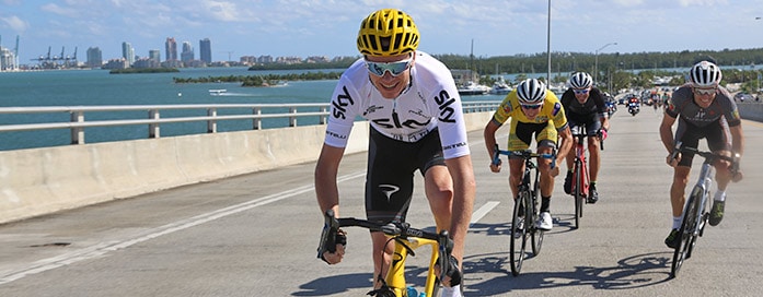 Join cycling legends Chris Froome & Mark Cavendish, among others pros, on Saturday, November 15, 2025 for a 100 or 75-mile ride! Starting and finishing at the Four Seasons Hotel Miami. Riders will be escorted and followed in a closed peloton by police vehicles at a minimum 18 mph pace. If equipment fails the ride does not stop. Our SAG support will either provide an alternative top of the line bike and/or make the necessary repair to allow members to rejoin the peloton.